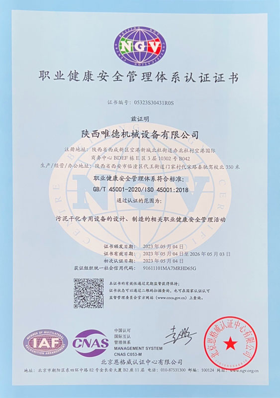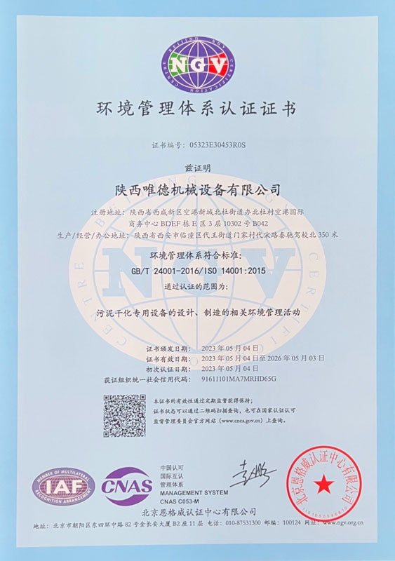 陕西唯德机械设备有限公司是一家在环保领域表现卓越的企业。公司拥有强大的技术研发和生产能力,专注于提供污泥干化系统成套设备。